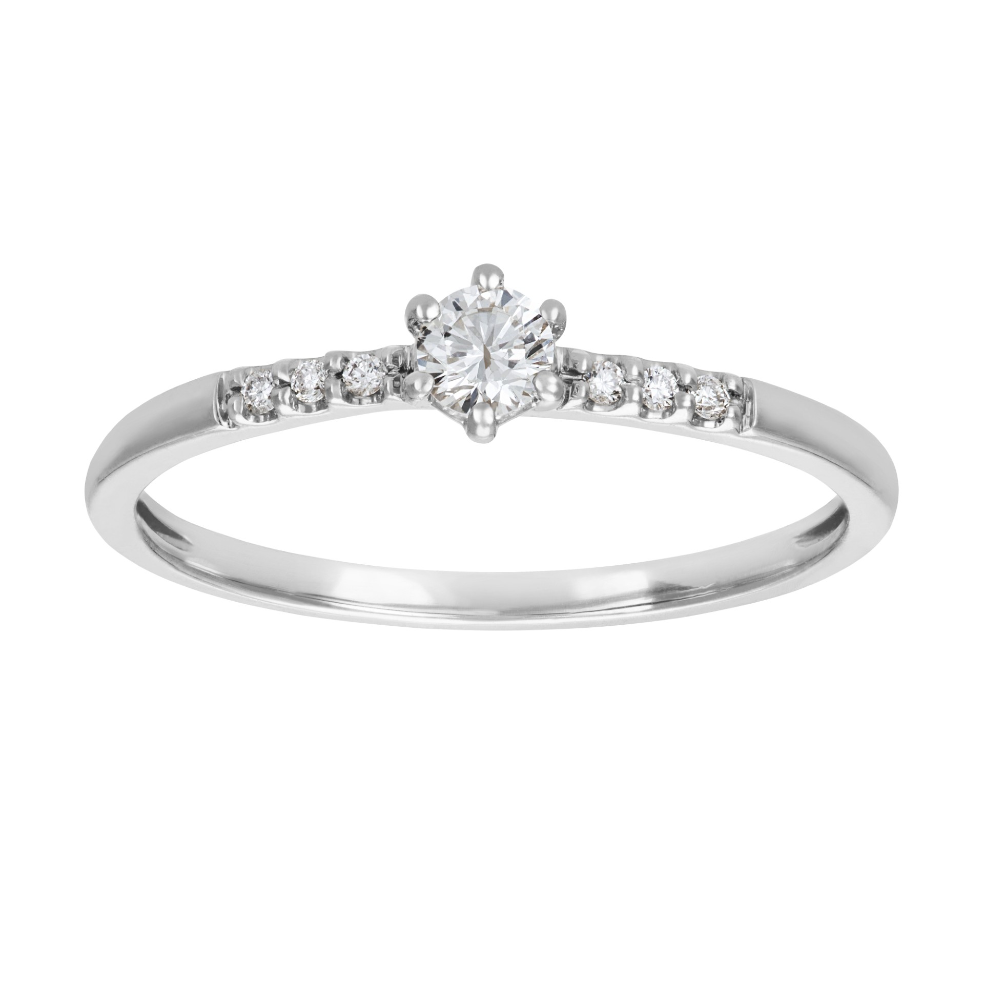 Upea 14 karaatin valkokullasta valmistettu solitare -mallinen timanttisormus sivukivillä. Klassisen kaunis ja siro malli, joka sopii jokaiselle. Timanttisormuksen keskikivi on 0,12 ct ja lisäksi sormuksen rungossa on 6kpl pienempiä timantteja. Näin ollen timanttisormuksen yhteiskaraatipaino on 0,15 ct. (Norm. 749€)
